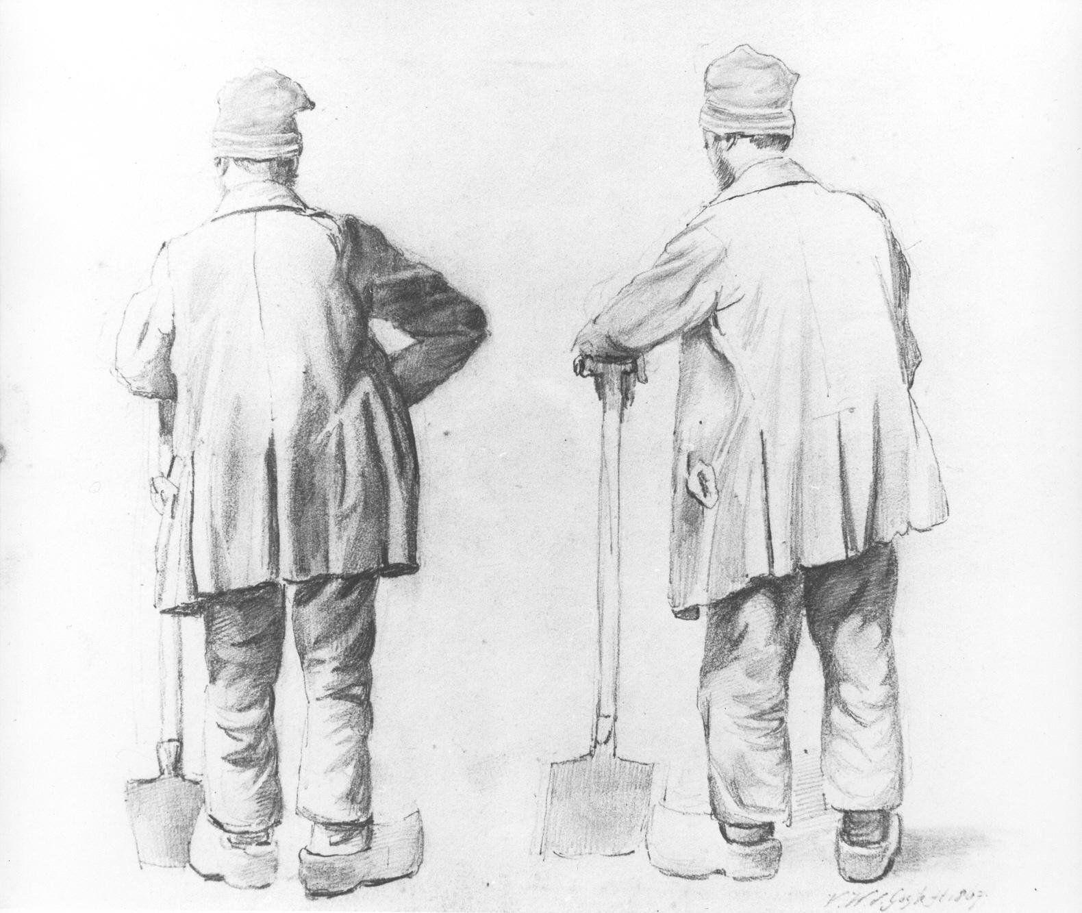 Halverwege zijn tweede jaar verliet Vincent onverwacht de HBS in Tilburg en keerde terug naar zijn ouders in Zundert. Waarom hij stopte, is niet bekend. Hij was een goede leerling, dus het lag waarschijnlijk niet aan zijn prestaties. Misschien had hij heimwee, ruzie of konden zijn ouders het lesgeld niet meer betalen — we weten het niet. Uit zijn Tilburgse tijd is één tekening bewaard gebleven: Twee schetsen van een man leunend op zijn spade (1867), gesigneerd met V.W. van Gogh.